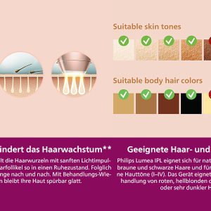 – Triệt lông lâu dài và không đau: Thiết bị triệt lông Philips IPL cho làn da mịn màng lên đến 3 tháng và lượng lông ít hơn 85% chỉ sau ba lần sử dụng