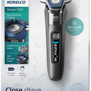 Bộ sản phẩm bao gồm: 1 máy cạo râu khô và ướt Philips Series 7000, 1 x tông đơ gập gọn tích hợp và 1 trạm sạc, 1 bàn chải làm sạch , thời lượng pin 60 phút và sạc đầy trong 1 gi