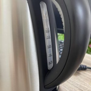 – Tay cầm có đệm cao su chống trơn, ấm được thiết kế vạch chia, và có thể nhìn thấy lượng nước bên trong.