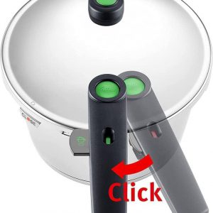 An toàn: nhờ chức năng bay hơi trên tay cầm, áp suất có thể giảm khi cần thiết. Nhờ vào thiết bị hỗ trợ đính kèm tiện dụng và chỉ báo khóa, đèn này chuyển từ màu đỏ sang màu xanh lá cây và khóa khớp bằng tiếng “click” khi nồi đã được đóng chặt