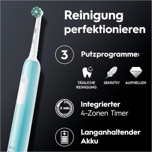 – Làm sạch hoàn hảo với 3 chương trình làm sạch và bộ hẹn giờ 4 vùng tích hợp để duy trì thời gian đánh răng là 2 phút theo khuyến nghị của nha sĩ