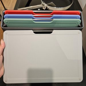 – Bốn thớt với màu sắc khác nhau với lớp vỏ bằng thép không gỉ có thể dễ dàng tháo ra bằng tay cầm. Có khả năng chống dấu vân tay chất lượng cao.