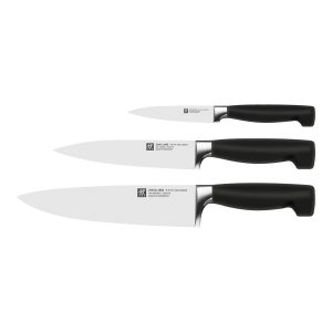 -Hãng sx: Zwilling -Nơi sx: Đức -Đế tre sản xuất china Bộ sản phẩm bao gồm: – Giá đỡ dao SharpBlock bằng tre với nắp bằng thép không gỉ – Dao gọt và trang trí (chiều dài lưỡi 10 cm) – Dao thái thịt (16 cm) – Dao đầu bếp (20 cm) Khối mài dao …