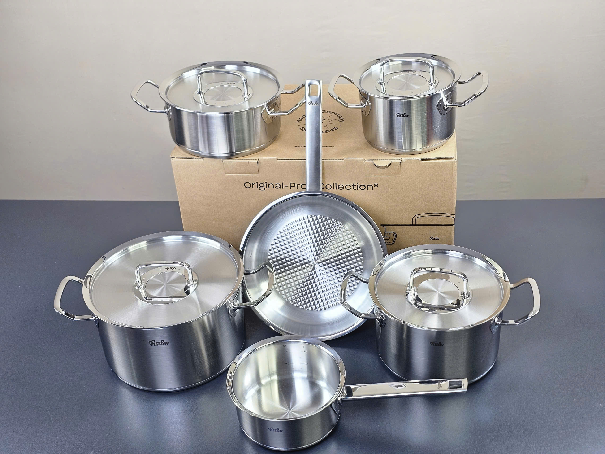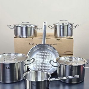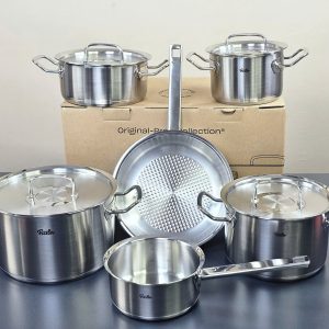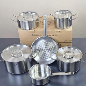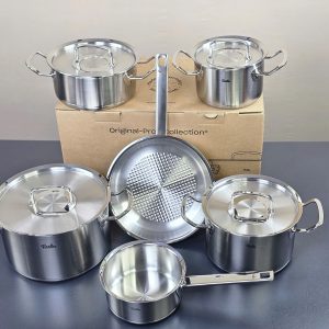 -Hãng sx: Fissler -Nơi sx: Đức -Bảo hành: 12 tháng -Nhập khẩu Đức – Gồm 4 nồi 1 chảo + 1 chảo inox mắt cáo profi 24 cm + 1 nồi 16 cm + 1 nồi 20 cm thấp + 1 nồi 20 cm cao + 1 nồi 24 cm + 1 quánh 16 cm …