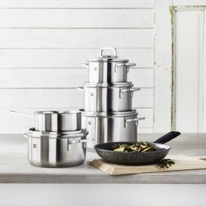 THÔNG SỐ KỸ THUẬT: -Hãng sx: Zwilling -Hàng nội địa Đức. -Bảo hành 12 tháng. -Gồm 4 nồi 1 quánh. +1 nồi quánh 16 cm +1 nồi có vung 16 cm +1 nồi 20 cm có vung +1 nồi 20 cm thấp có vung + 1 nồi 24 cm có vung +1 chảo 24 cm …