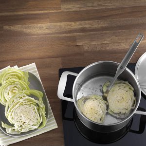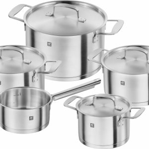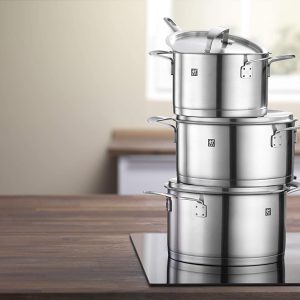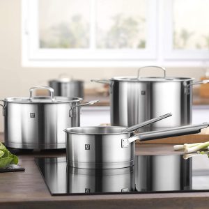 – Với bộ nồi 5 món Zwilling Base, bạn chỉ cần đo lượng nước trong một trong những chiếc nồi của mình. Vạch lít bên trong cho bạn biết chính xác lượng khối nước dùng bạn nên thêm vào súp. Với bốn cái chảo và một cái soong trong bộ này, bạn sẽ luôn sẵn sàng cho một bữa tối thịnh soạn. Nồi sử dụng được cho bếp gas, bếp từ và bếp điện từ. Bạn cũng có thể cho nồi vào lò nướng. Nhôm trong sàn phân phối nhiệt trên toàn bộ bề mặt. Vì vậy, bạn giữ nhiệt lâu hơn và luôn có thể hâm nóng đều các món ăn yêu thích của bạn. Sau khi nấu xong, bạn chỉ cần cho nồi vào máy rửa chén để rửa sạch.