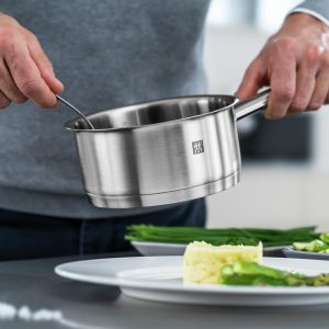 Thép không gỉ chịu lực cao và bền có thể rửa bằng máy rửa chén. Nhưng đó chỉ là một trong rất nhiều lợi ích bạn sẽ được hưởng. Tay cầm rộng (và tay cầm) cách nhiệt đủ lớn để xử lý an toàn. Chúng cũng giữ mát lâu hơn. Bạn cũng sẽ đánh giá cao vành nồi chống nhỏ giọt tiện dụng, thang đo bên trong và nắp kính vừa vặn hoàn hảo giúp tiết kiệm năng lượng. Dụng cụ nấu Zwilling Pro phù hợp với mọi loại nguồn nhiệt, bao gồm cả bếp từ và thậm chí có thể được sử dụng để nướng trong lò nướng ở nhiệt độ lên đến 200°C.