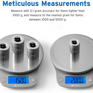 Độ chính xác cao: Các phép đo tối thiểu: 1g. Các cảm biến được nâng cấp cung cấp các kết quả đọc tức thì và các phép đo đáng tin cậy cho các mặt hàng. Tăng kép duy nhất: < 1000g, 0,1g; 1000-5000g, 1g. Chức năng Toàn diện: Cân tới 11 lb / 5 kg trên 5 đơn …