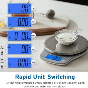- Chức năng Toàn diện: Cân tới 11 lb / 5 kg trên 5 đơn vị đo lường (oz, lb, g, fl: oz, và mL) ngoài việc chuyển đổi giữa tỷ trọng sữa và nước.