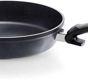 – Thân chảo Fissler Comfort có vành cao hơn và bề mặt chiên lớn giúp đảo và đảo thoải mái, không lộn xộn
