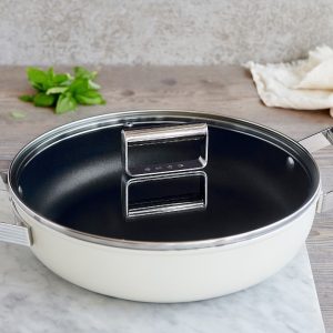 – Chiếc nồi chảo chống dính đa năng Smeg 28cm có thể sử dụng để nấu như nồi, vừa có thể chiên rán mà không sợ bám dính như chảo.