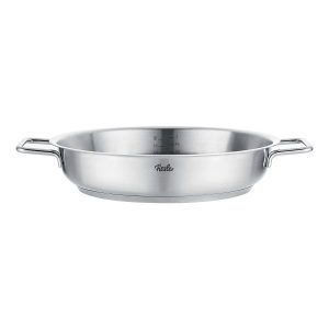 – Thân chảo đựng thức ăn Fissler có hai tay cầm bên hông tiết kiệm không gian làm bằng thép không gỉ đánh bóng, vành chảo cực cao và bề mặt chiên lớn để khuấy và lật thoải mái, không bị đổ. Phục vụ các món ăn trực tiếp trên bàn bằng hai tay cầm bên hông bằng kim loại tiết kiệm không gian.