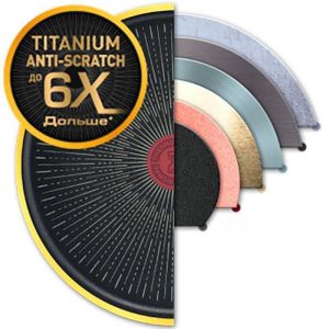 – Lớp phủ Titanium nonstick mang lại khả năng chống dính tuyệt vời và độ bền vượt trội, có thể sử dụng không hoặc ít dầu khi nấu ăn.