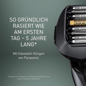5 LƯỠI DAO THÉP KHÔNG GỈ TIÊN TIẾN CỦA NHẬT BẢN: Dành cho việc cạo râu nhẹ nhàng và làn da nhạy cảm với khả năng giảm ma sát trên da*. Dao cạo cao cấp với thành phần được thiết kế mới gồm 5 lưỡi dao giúp cắt tóc dài và khít một cách hiệu quả theo các hướng phát triển khác nhau. *Thử nghiệm trong phòng thí nghiệm so với sản phẩm tiền nhiệm ES-LV96 của Panasonic