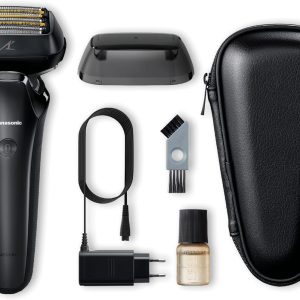 -Máy cạo râu khô/ướt Panasonic ES-LS6A, Bộ nguồn, Bàn chải làm sạch, Túi đựng, Dầu, Nắp bảo vệ
