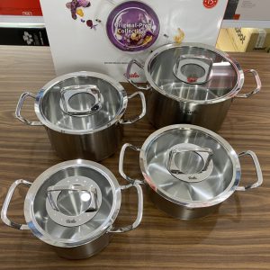 -Hãng sx: Fissler -Nơi sx: Đức -Bảo hành: 12 tháng. -Nắp kính -Gồm 4 nồi +1 nồi 16 cm +1 nồi 20 cm thấp + 1 nồi 20 cm cao +1 nồi 24 cm ĐẶC ĐIỂM NỔI BẬT: Tất cả nồi : xoong, chảo, rang, chảo và bộ nồi đều phù hợp với mọi loại …