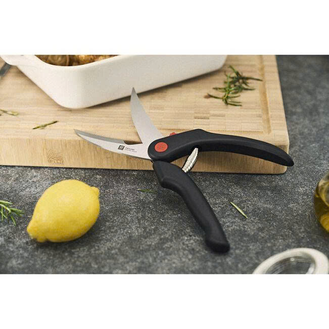 Kéo Zwilling JAHenckels Poultry 42932-001-0 với tay cầm bằng chất liệu tổng hợp giúp thực hiện mọi công việc cắt thái trong nhà bếp một cách dễ dàng. Cho dù là cắt rau thơm, thái các loại thực phẩm khác nhau hay mở bao bì an toàn, chiếc kéo này đều đáp ứng được. Mỗi chiếc kéo đều được lắp ráp bằng vít giúp lưỡi kéo chuyển động chính xác và dễ dàng mài sắc.