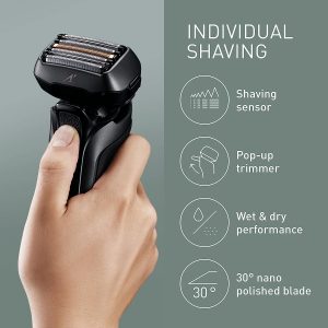 – Động cơ tuyến tính cực nhanh: cung cấp 70.000 chuyển động cắt ngang mỗi phút để cạo êm, sạch và hiệu quả. Đầu cạo di chuyển theo 22 hướng độc lập để giảm thiểu áp lực và kích ứng da. Máy cạo râu sử dụng nam châm mạnh nhất thế giới để đảm bảo cạo sát và mịn.