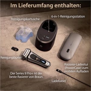 – Dao cạo tốt nhất của Braun – tốt hơn bao giờ hết: Series 9 Pro+ định nghĩa lại việc cạo râu bằng điện và đảm bảo làn da mịn màng với sự thoải mái và chính xác tối đa.