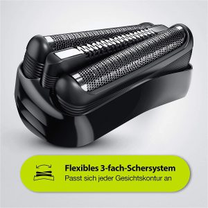 -100% không thấm nước. Braun Series 3 được chứng nhận IPX7 – nó có thể chìm trong nước sâu 5 mét mà không gặp vấn đề gì. Điều đó có nghĩa là bạn có thể thoải mái rửa nó dưới vòi nước để dễ dàng vệ sinh.