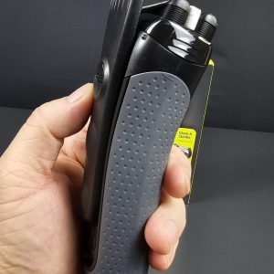 Đầu tỉa chính xác có thể mở rộng ở mặt sau lý tưởng để định hình ria mép hoặc tóc mai hoặc cắt tỉa râu trước khi cạo.