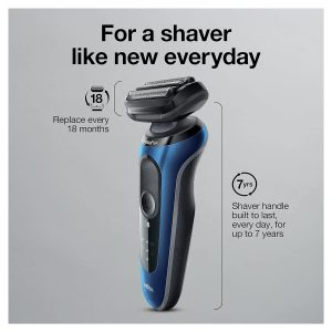 Máy cạo râu điện Braun Series 6 dành cho nam giới có đầu xoay SensoFlex đã được kiểm nghiệm da liễu và lưỡi dao SensoFoil cho phép thích ứng áp suất thấp để cạo sát mà vẫn giữ được độ nhạy cảm trên da của bạn. Pin Li-Ion cho phép cạo râu lên đến 3 tuần và sạc nhanh trong 5 phút. Máy cạo râu điện dành cho nam này có khả năng chống thấm nước 100% khi sử dụng Ướt & Khô. Tương thích với hệ thống EasyClick. Bao gồm phụ kiện tông đơ chính xác. Hộp bao gồm · 1x Dao cạo điện Series 6 dành cho nam – Xanh lam · 1x Phụ kiện tông đơ chính xác · 1x Hộp đựng du lịch · 1x Ổ cắm thông minh để điều chỉnh điện áp 100-240 tự động · 1x Bàn chải làm sạch