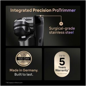 -Độ sắc bén hoàn hảo với mỗi lần kéo: Dao cạo tốt nhất của Braun với 5+1 bộ phận dao cạo được đồng bộ hóa hoàn hảo để cắt nhẹ nhàng ngay cả những bộ râu rậm nhất chỉ với một lần kéo