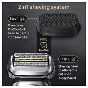 – Precision ProTrimmer, một tông đơ cắt râu tích hợp, trượt ra khỏi mặt sau của máy cạo râu Braun để cắt hoàn hảo ngay cả những sợi lông dài nhất, tóc mai và ria mép
