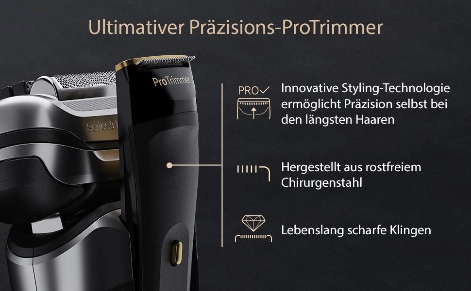 – Độ chính xác tối ưu, ngay cả với những sợi tóc khó tỉa: Máy tỉa Precision ProTrimmer tích hợp với lưỡi dao bằng thép không gỉ đảm bảo hiệu quả tối đa khi tỉa ria mép, tóc mai và lông dưới mũi.