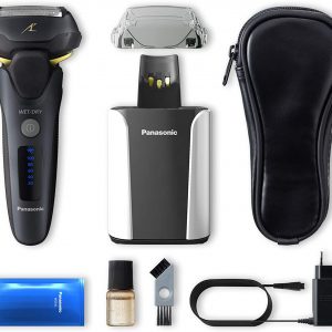 Nội dung hộp: 1x dao cạo khô / ướt Panasonic ES-LV97, 1x nguồn điện, 1x hộp đựng đồ du lịch, 1x làm sạch và trạm sạc, 1x chổi làm sạch, 1x dầu