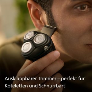 – Cạo triệt để: Máy cạo râu điện của chúng tôi có đầu cạo chuyển động 5 chiều có thể đi theo mọi đường cong trên khuôn mặt bạn. Cắt và tỉa lông ngay trên bề mặt da để cạo sát và thoải mái.