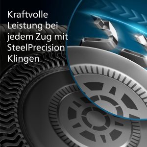 – Cắt nhiều hơn với mỗi lần cạo*: 45 lưỡi dao SteelPrecision tự mài sắc cắt 90.000 lần mỗi phút để cạo sát và hiệu quả
