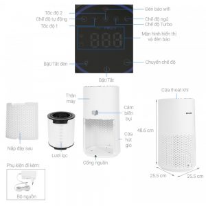 -Làm sạch không khí nhanh chóng, thích hợp cho các phòng có diện tích lên đến 78 m²
