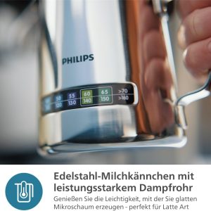 -Dễ dàng thưởng thức, bọt sữa tuyệt hảo: với bình đựng sữa bằng thép không gỉ 450 ml và ống hơi mạnh mẽ, bạn sẽ có được bọt sữa mịn, sánh mịn chỉ trong chốc lát – để thưởng thức cà phê hoàn hảo.
