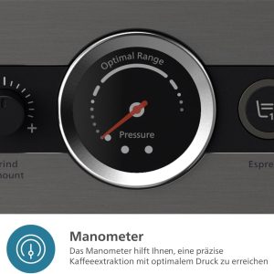 -Đạt được áp suất nước chính xác nhờ đồng hồ đo áp suất tích hợp hiển thị trạng thái pha chế và thông báo cho bạn khi đạt đến áp suất tối ưu.
