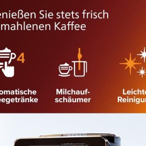 – Bạn có thể dễ dàng chuẩn bị một ly cappuccino hoặc latte macchiato kem mịn như nhung bằng cách đánh bông sữa của bạn theo cách thủ công. Nhờ công nghệ AquaClean đã được cấp bằng sáng chế, nếu bộ lọc được thay đổi thường xuyên, việc tẩy cặn chỉ cần thiết sau 5.000 cốc (khoảng thời gian thay đổi tùy thuộc vào lựa chọn đồ uống và số lượng quy trình rửa và làm sạch).