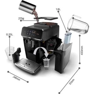 – Thương hiệu: Philips – Model: EP3221/40 – Được phát triển tại: Italia – Nơi sản xuất: Romania – Giao diện người dùng: Cảm biến trực quan – Công suất pha chế: 12 phần cà phê (12 ly) – Dung tích chứa cà phê hạt: 275 gam – Dung tích bình chứa nước: 1,8 lít …
