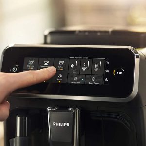 – Màn hình cảm ứng trực quan cho phép bạn dễ dàng chọn loại cà phê yêu thích của mình: Chỉ cần một lần chạm nhẹ là bạn có thể thưởng thức hương vị hấp dẫn và hương thơm của cà phê làm từ hạt mới xay.