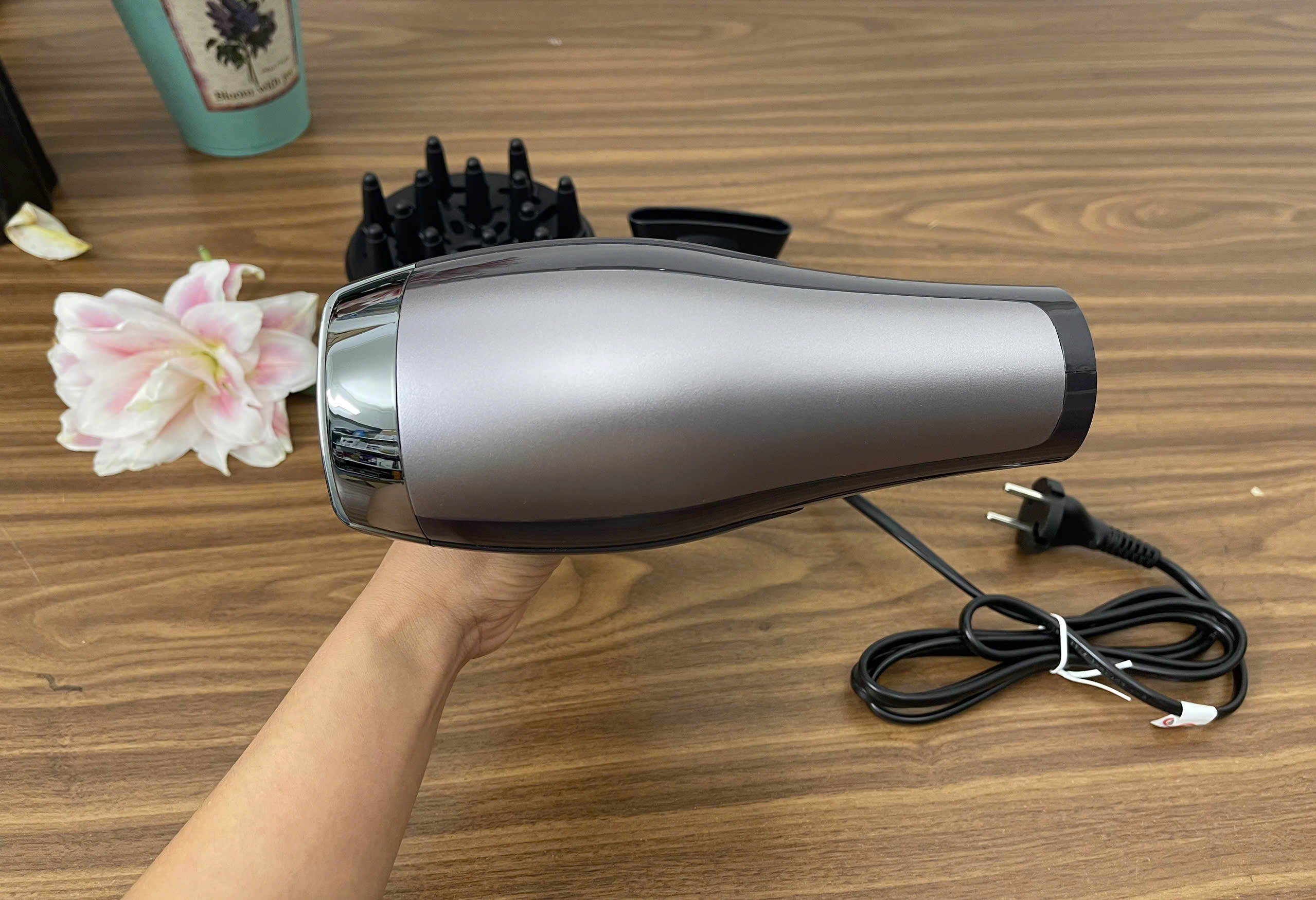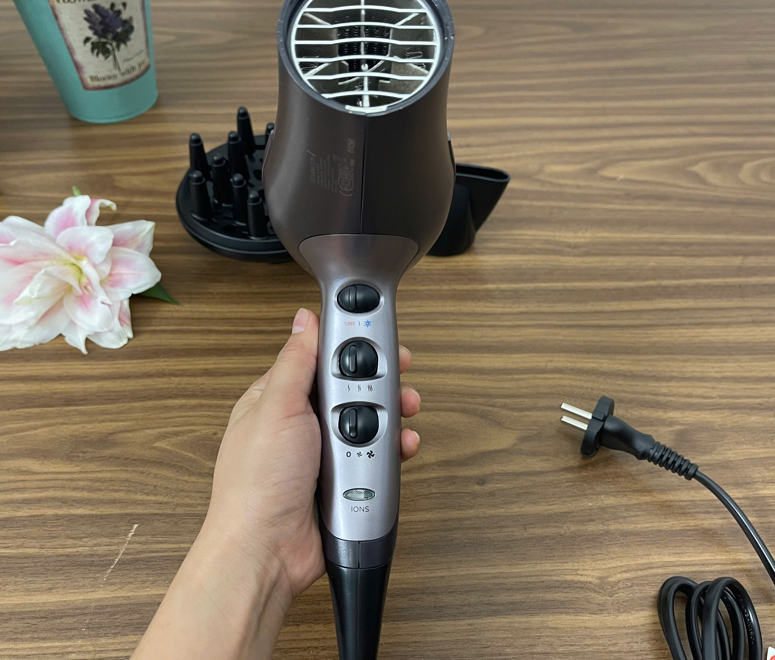 – Máy sấy tóc có công suất 2400w và nhiều ion hơn 90% ==> chị em sấy tạo kiểu thoải mái không còn lo tóc bị khô xơ.