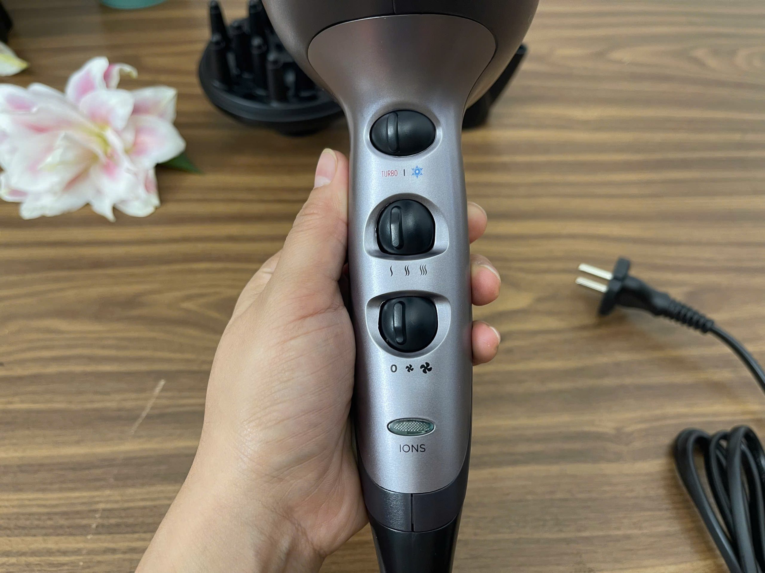 – Máy tạo ion làm giảm điện tích tĩnh, để tóc khô nhanh hơn và cung cấp độ bóng.