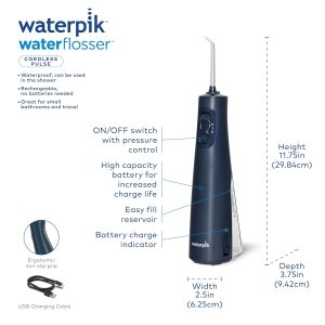 MÁY TỈA RĂNG CÓ THỂ SẠC LẠI: Waterpik Cordless Pulse là lựa chọn tuyệt vời cho việc dùng chỉ nha khoa cầm tay. Máy bao gồm 2 đầu Waterpik Classic Jet để sử dụng hàng ngày, pin sạc và có thể sử dụng trong khi tắm.