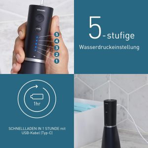 5 mức áp suất nước: điều chỉnh trải nghiệm vệ sinh răng miệng theo sở thích cá nhân của bạn với 5 mức áp suất nước, lưu cài đặt cuối cùng của bạn cho lần tiếp theo