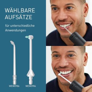 -BAO GỒM 2 VÒI PHUN: Máy tăm nước siêu âm cầm tay này bao gồm 1 vòi phun chỉnh nha (WEW0984W303) để làm sạch xung quanh các thiết bị chỉnh nha như niềng răng và 1 vòi phun siêu âm (WEW0986X503) để làm sạch nhanh chóng và hiệu quả