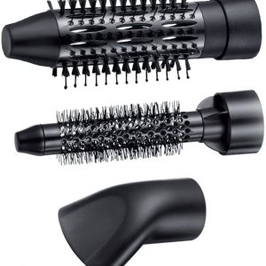 - Máy gồm 3 đầu đính kèm tạo kiểu: phần đính kèm vòi tạo kiểu để làm khô nhanh, phần đính kèm bàn chải tròn (38mm) với lông trộn nhiệt cho sóng mềm, phần đính kèm bàn chải tròn (21mm) với lông nhiệt cho những lọn tóc vào sóng đẹp