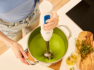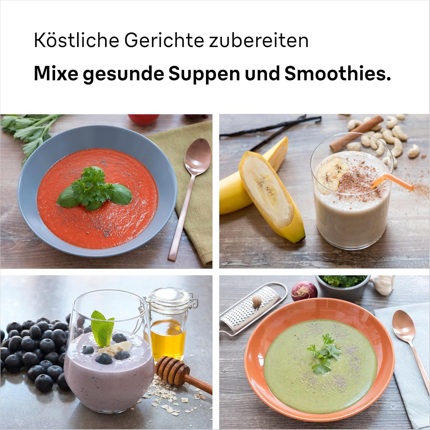 Mạnh mẽ và êm ái: động cơ 900 watt kết hợp sức mạnh ấn tượng với hoạt động êm ái và thiết kế nhỏ gọn. Điều này đảm bảo kết quả tuyệt vời – lý tưởng để chuẩn bị các món ăn yêu thích của bạn một cách nhanh chóng và dễ dàng.