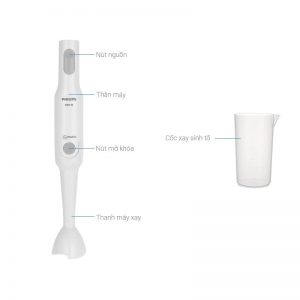 – Sản phẩm gồm 1 thân máy, 1 thanh máy xay và cốc xay sinh tố 500 ml.