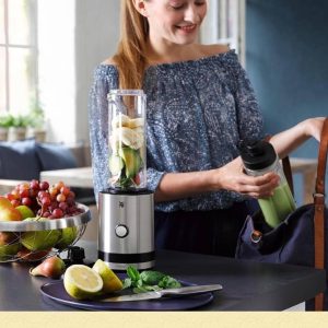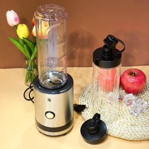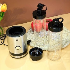 – Máy xay WMF đã rất tinh tế khi kèm theo 2 bình với nắp uống chống tràn để bạn có thể dễ dàng đem sinh tố đi bất kì đâu bạn muốn mà không sợ nước bị rò rỉ ra ngoài, dễ dàng đem sinh tố đi học đi làm,…chất liệu bình làm bằng Tritan, không chứa BPA, không vị và không mùi.