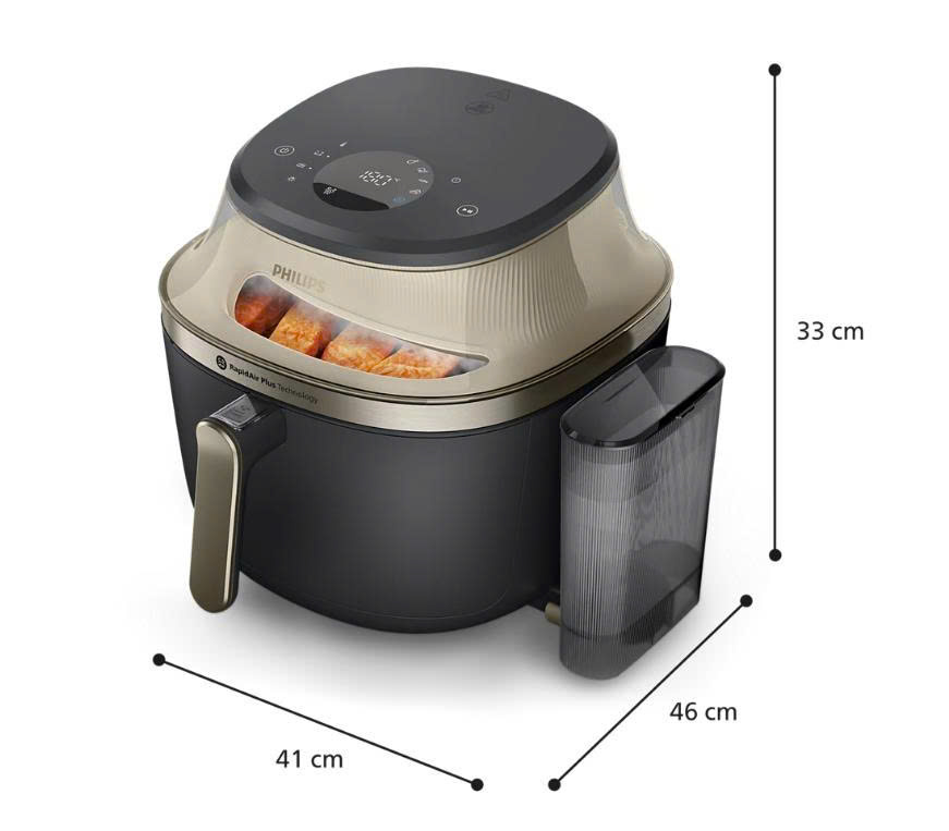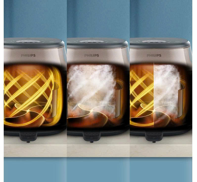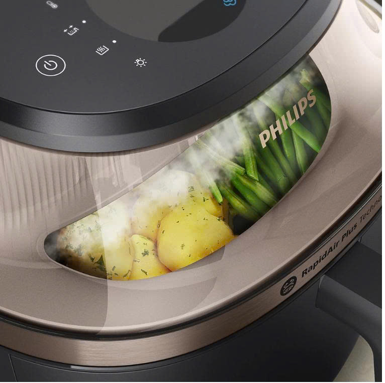 Giờ đây bạn có thể có được cả hai ưu điểm tuyệt vời. Chiên không dầu và hấp cùng lúc để có lớp vỏ giòn tan bên ngoài và phần thịt mềm mọng bên trong. Hoàn hảo cho bánh mì quế vàng óng, bánh mì nướng giòn rụm, gà nướng mọng nước và rau củ được chế biến theo một phong cách hoàn toàn mới. Không còn thức ăn bị cháy hoặc chưa chín nữa.