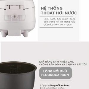 – Với công nghệ gia nhiệt tối ưu và hệ thống thoát hơi nước hợp lý, nồi cơm điện tử giúp hạn chế thất thoát dinh dưỡng trong từng hạt gạo. Gia đình có thể thưởng thức cơm ngon đúng chuẩn và đảm bảo sức khoẻ mỗi ngày.
