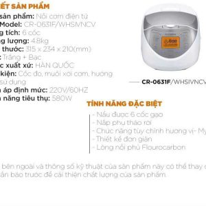 – Nồi Cơm Điện Tử Cuckoo CR-0631F – Lựa chọn thông minh cho bữa cơm gia đình hiện đại:
